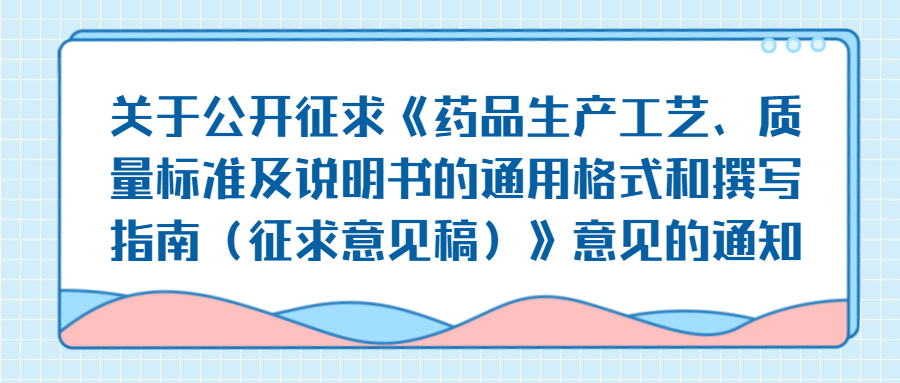 關于公開征求《藥品生產(chǎn)工藝、質量標準及...