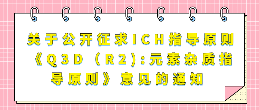 關于公開征求ICH指導原則《Q3D(R...